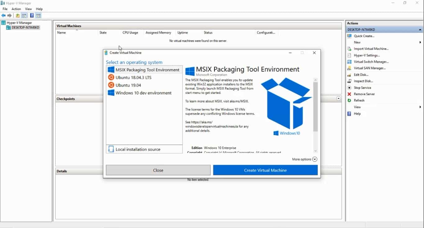برنامج Hyper V من أفضل برامج إنشاء الأنظمة الوهمية