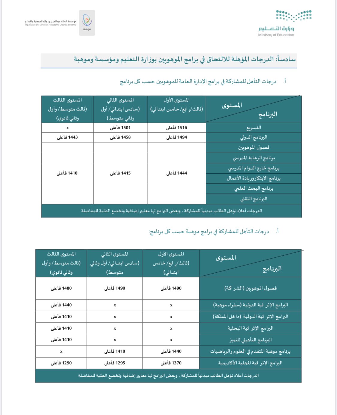 On Twitter إعلان أبناءنا الطلاب إليكم تفسير درجات مقياس موهبة البرنامج الوطني للكشف عن الموهوبين والبرامج المؤهل لها الطالب للمشاركة في 1 برامج الإدارة العامة للموهوبين وزارة التعليم 2 برامج مؤسسة موهبة حيث اعتمد قياس