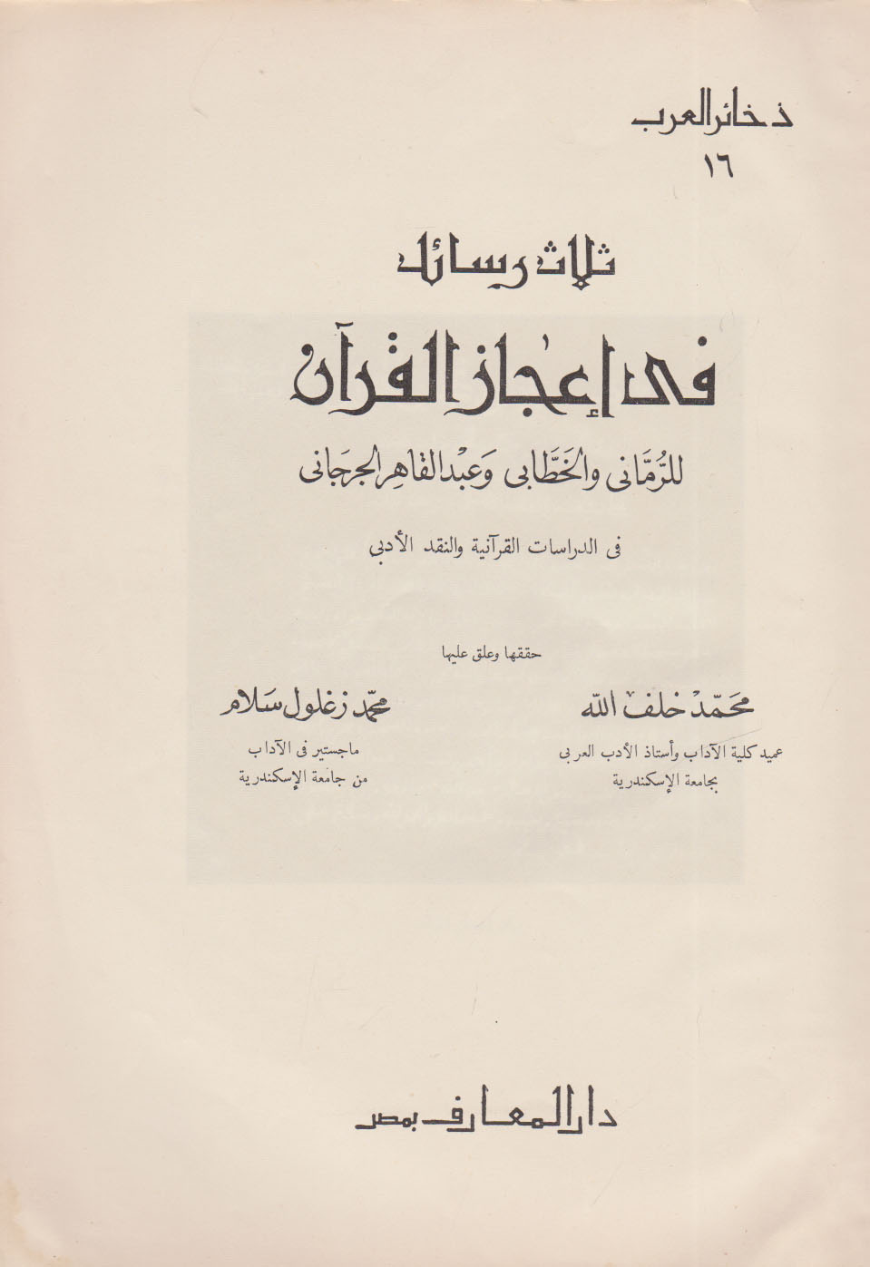 مكتبة متفرقة على تويتر للبيع كتاب ثلاث رسائل في اعجاز القران للرماني والخطابي وعبدالقاهر الجرجاني في الدراسات القرانية والنقد الادبي حققها وعلق عليها محمد خلف الله و محمد زغلول سلام الطبعة الاولي