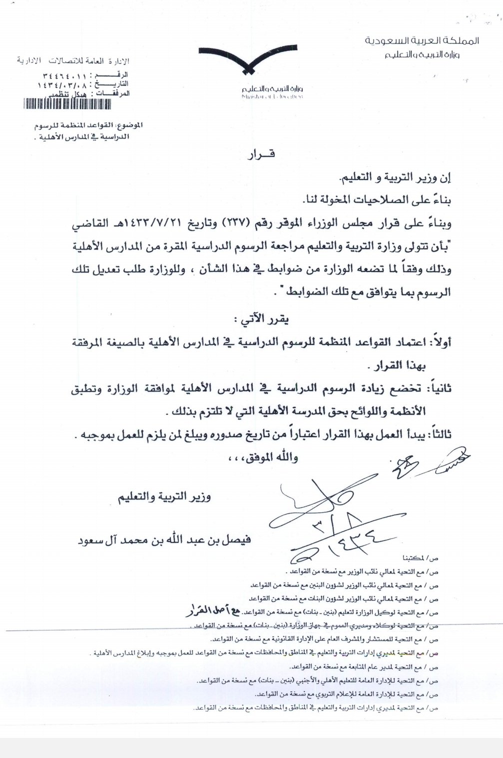 الدكتور خالد النمر On Twitter نص قرار مجلس الوزراء رقم ٢٣٧ بتاريخ ١٤٣٣ ٧ ٢١على أن مراجعة وتحديد رسوم المدارس الأهلية من اختصاص وزارة التعليم ولم يحصرها بتنفيذ العقود التي تأتي رسومها بموافقة رسمية من