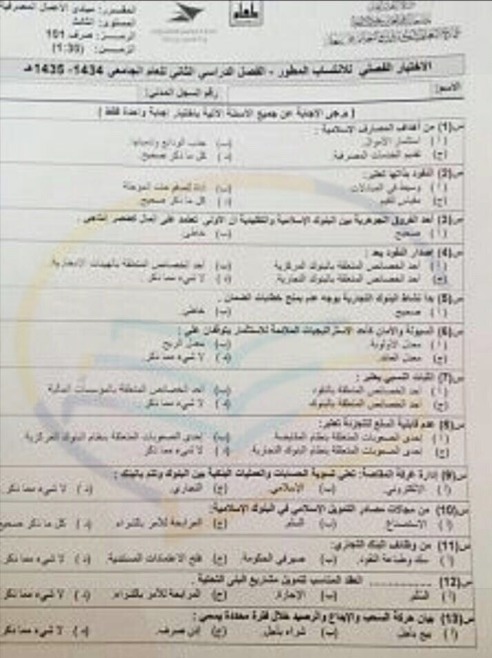نماذج اختبارات فقه المعاملات قروبات جامعة الامام