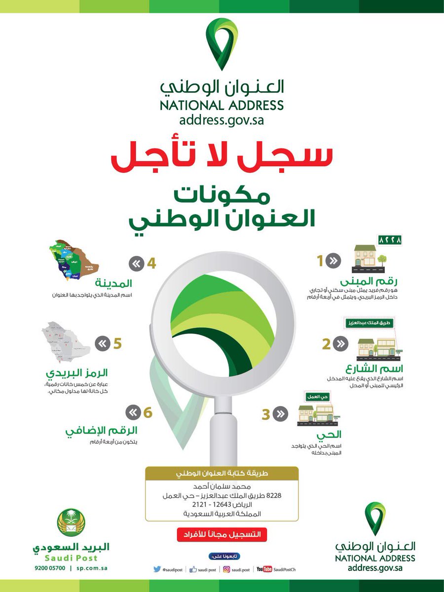 البريد السعودي A Twitteren مكونات العنوان الوطني عنوانك هويتك سجل لاتأجل